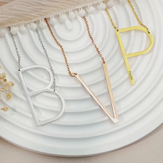 Girl Graduation Gifts - Large Letter Necklace - Letter Name Personalized - Sideways Initial Necklace Oversized Granddaughter Graduation Gift